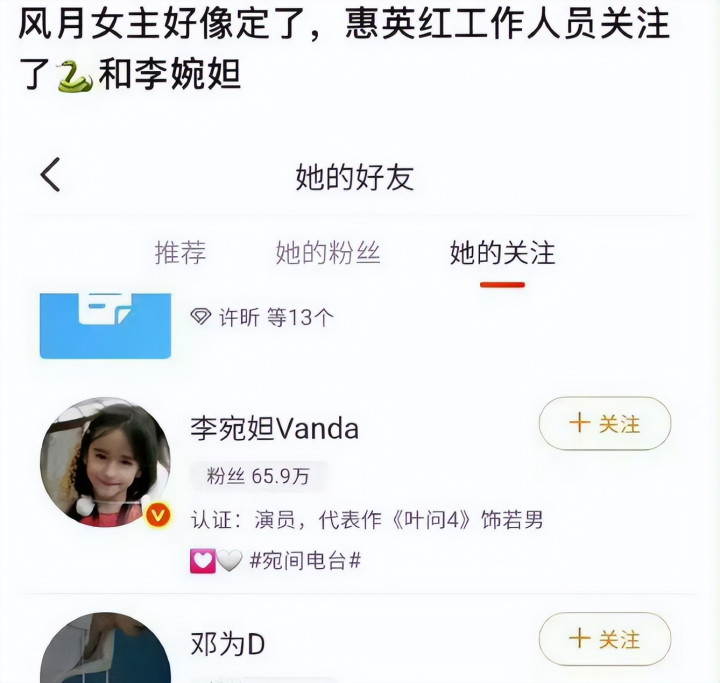 从网上出现的消息上看,惠英红的工作人员,同时关注邓为和李宛妲,正因如此,才传出李宛妲要出演《风月不相关》,各位读者,你们认为邓为和李宛妲有CP感吗?